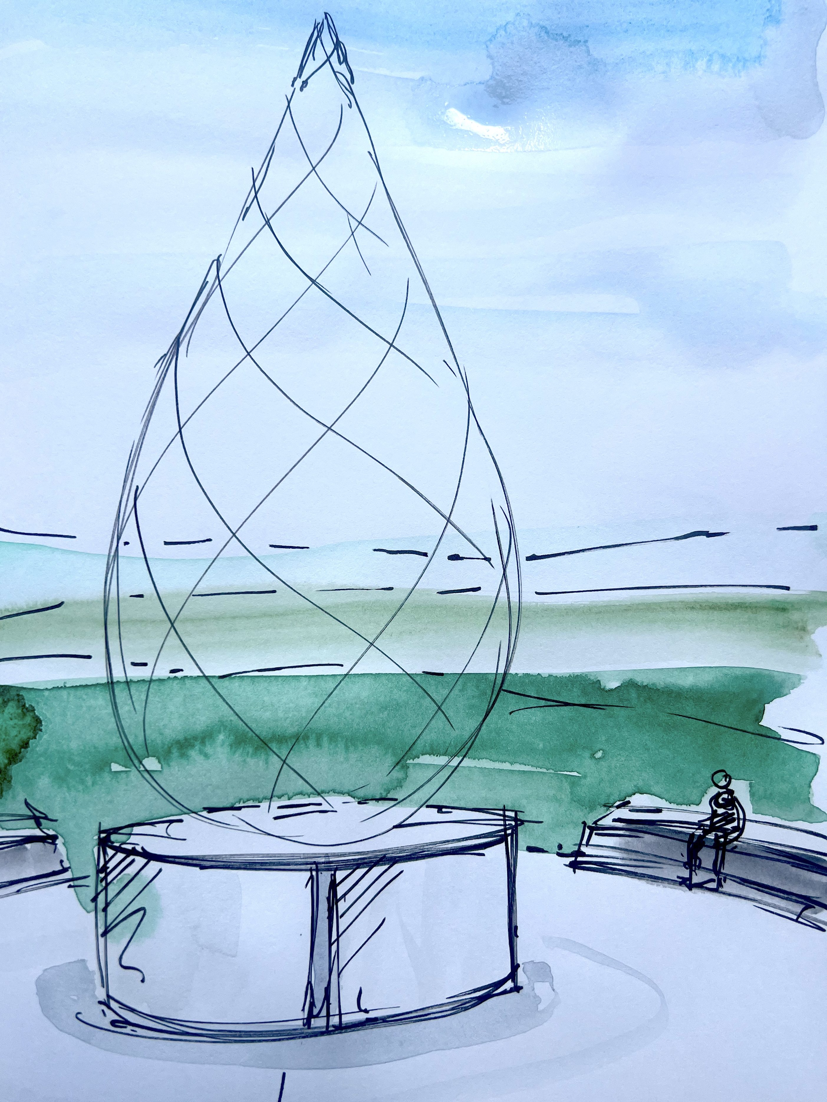 Marcos Lutyens, acclaimed artist with expertise in memorialization projects, was asked to develop a design concept using the teardrop as a starting point. The memorial’s final metal structure represents the resilience, interconnectedness and strength of both the virus victims and their surviving loved ones.